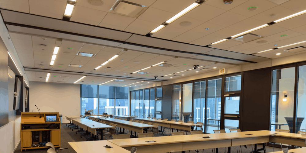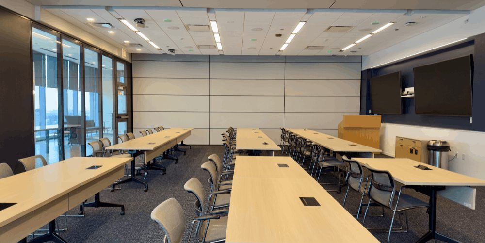 - Fun fact: To avoid the relocation of existing MEP, the Skyfold motor and hanger locations were adjusted. The support steel (by others) is also segmented.