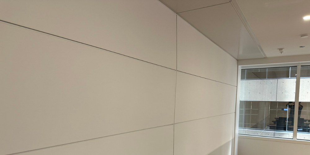 Panel Finish: Top & Bottom Row: Flat Cut White Ash Wood Veneer N-701-AW-CB Dooge Log 1368793, Stain CC10487B Dark. Balance: Carnegie Xorel Custom Flux 6557 2B027, Prime Painted Panels